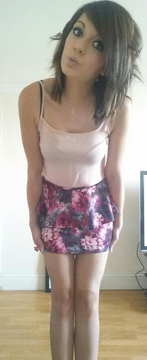 This outfit is gorgeous the detailing with the floral print on the skirt really stands out and looks great matched with a pair of dark pink heels. The Cami T-shirt is very comfortable to wear and due to the pale colour it doesnt stand out over the skirt.